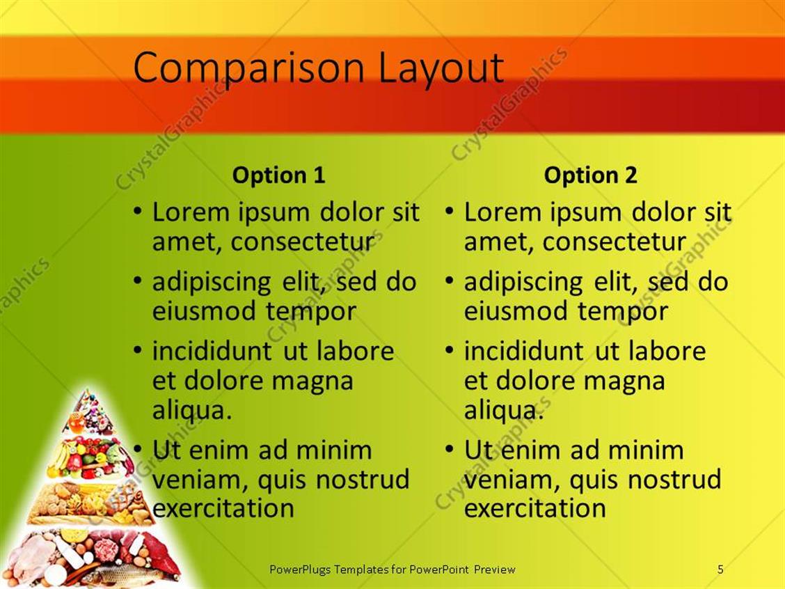 PowerPoint Template: food pyramid containing foods for a healthy diet with various food types on ...