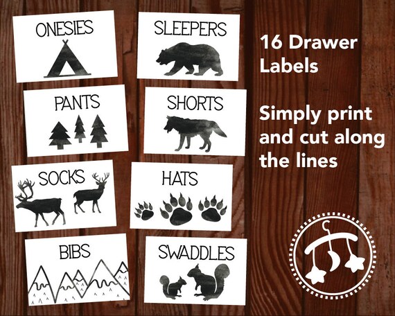 Adventure Printable Baby Nursery Drawer Labels / Basket Labels - print ... Modern Printable Baby Drawer Labels for Nursery With this purchase you'll receive 8.5 x 11 inch printable PDF INSTANT DOWNLOAD of the drawer labels. NO PHYSICAL PRODUCT WILL BE MAILED TO YOU. HOW IT WORKS: 1. Checkout + download the file 2. Print on your home printer or at a local copy/print shop 3.