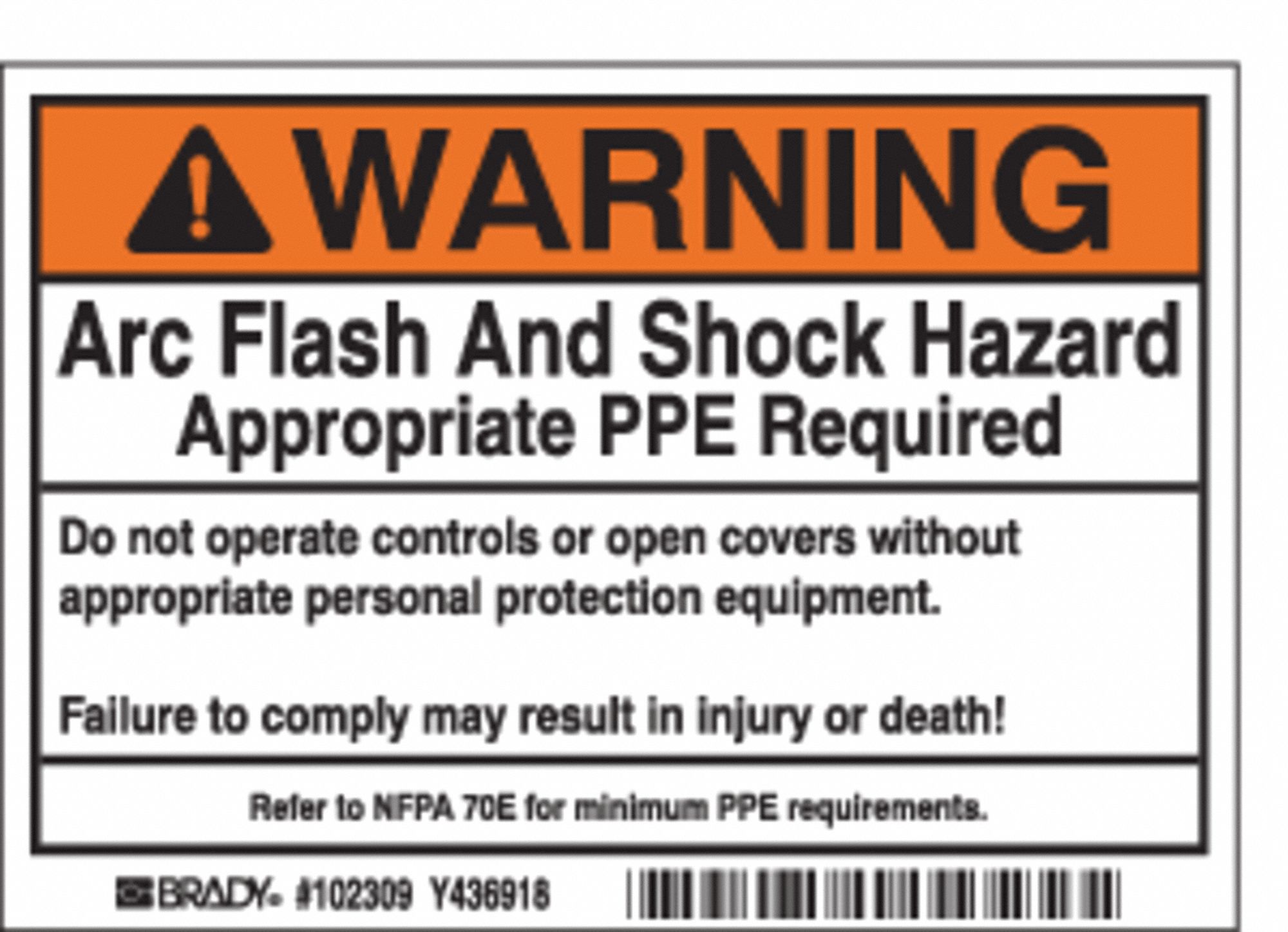 NEC Arc Flash Protection Labels - Warning Arc Flash Hazard Appropriate PPE Required from Seton ...