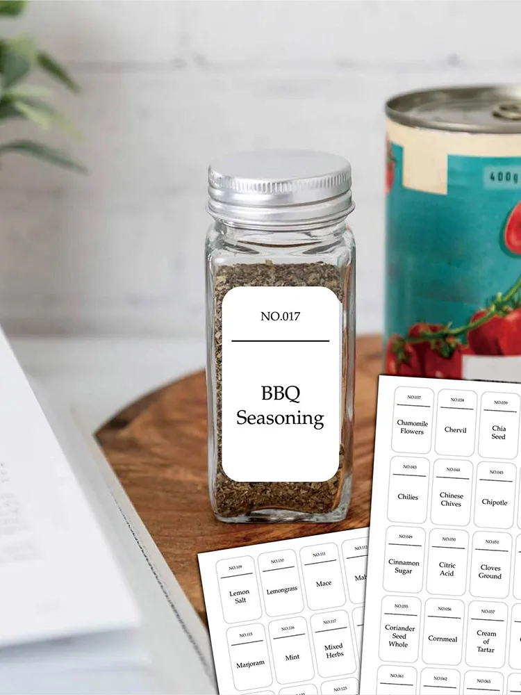 Spice Jar Labels Online Australia Wide - The Pretty Store Comes with approximately 95 herb and spice labels Matching pantry and basket labels available Can be used on the lids or sides of bottles Adding personality to your home isn't meant to be hard, and it doesn't have to be boring. Our sets fit on a range of different container types including Tupperware, other plastics and glass.